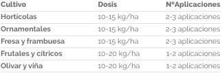 Puede aplicarse en todos los cultivos, ajustando su dosificación a las características del terreno, nivel de fertilidad y los rendimientos esperados por el cultivo.